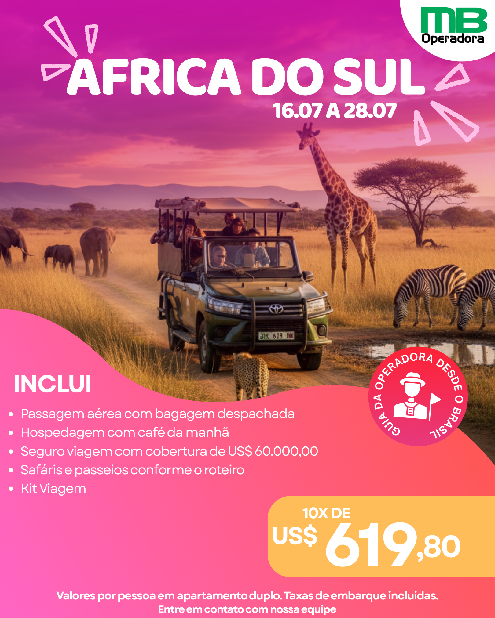 Por razões organizacionais ou climáticas, o itinerário poderá sofrer alteração sem aviso prévio.