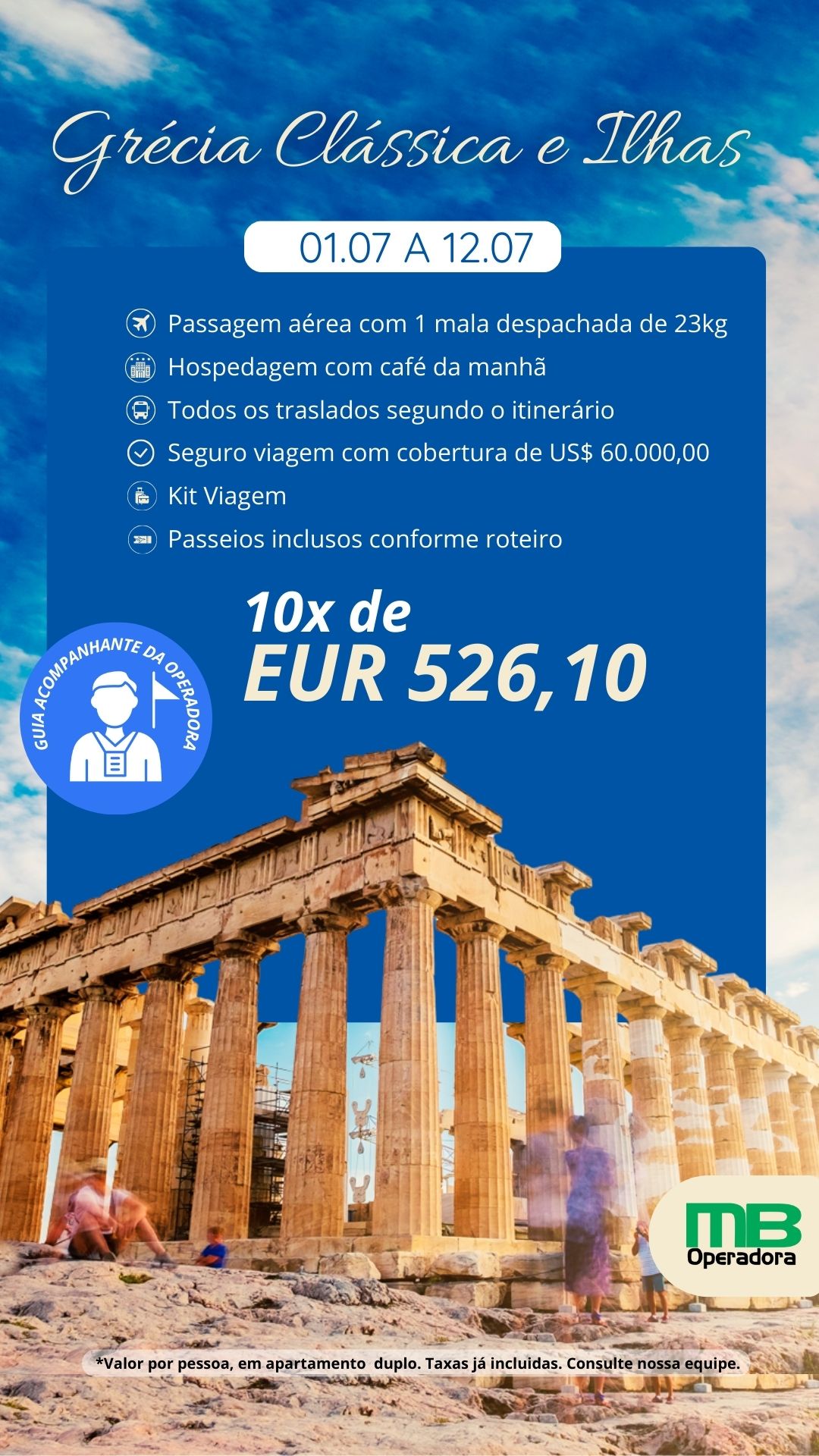 VALOR POR PESSOA EM APARTAMENTO DUPLO = EUR 4.935,00 + EUR 326,00 taxas